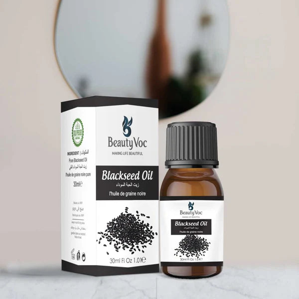 Beautyvoc Black Seed Oil 30ml is a premium cold-pressed Nigella Sativa oil known for its versatile benefits. Rich in natural vitamins, antioxidants, and essential fatty acids, it helps nourish and protect skin, hair, and nails. Its lightweight, non-greasy formula absorbs quickly to leave skin soft, hair shiny, and nails strengthened. Unique among oils, Beautyvoc Black Seed Oil is edible in small amounts, making it a perfect addition to your daily wellness routine. Ideal for massage, hair treatments, DIY beauty recipes, or a natural supplement for overall body care.